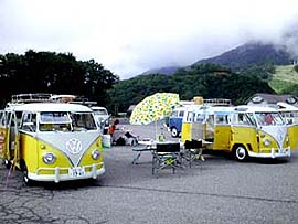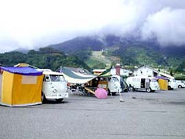 これです!ここ富山のイベントでしか見れないでしょうね。TypeIIキャンパー軍団!まさにキャンプ場と化したエリアです。