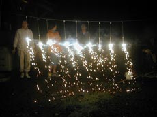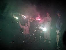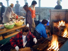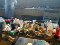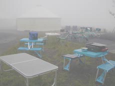 凄いモヤですが雨は降っていないので花火も出来ましたね。煙だかモヤだかわからないくらいですが...仕上げの焼きそばは定番!