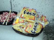 宿泊場所のパオに隣接したBBQ会場。相変わらずのモヤですが雨は降っていません。用意された食肉の数々(笑)