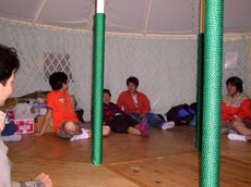 さて、楽しいBBQパーティーも終わりパオに入ってVW談義を...熱心に聞き入る「VW大好きな!」方ばかりでしたね。