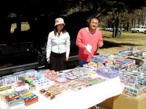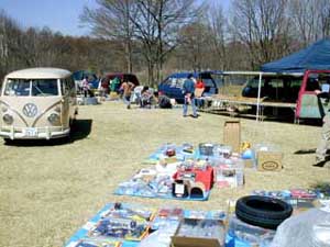 左は人のいいオモチャ屋テッちゃん。シボレーは木に隠してる?(笑)スワップミートも芝生の上で。