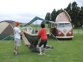 みなさんテント広げてキャンプの準備もさすが手慣れた手つきです。