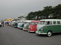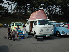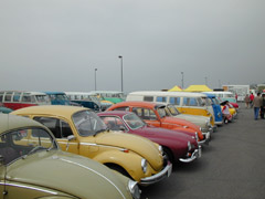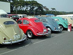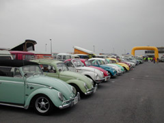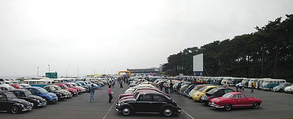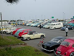 久しぶりに参加したフラバグですがこれは入り口ゲート手前の一般駐車場。まるでカーショーのようなVWの列。