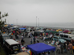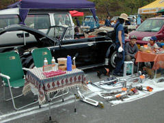 左は会場内のスワップブース。サワ〜さんちの裏山から撮影wa(^^; 右は一般駐車場。トミー号のチャリもパーキングに?