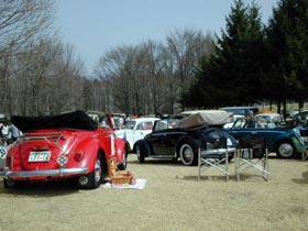 おバカブリオレクラブメンバーの愛車を中心にディスプレーの風景。