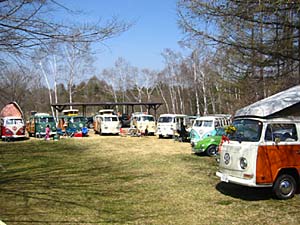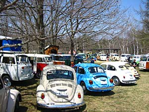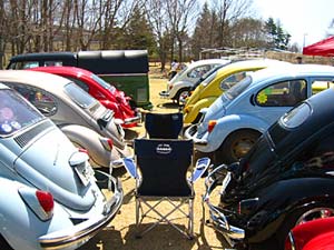 一夜明けて(朝の7時頃です)朝日を浴びるVW達..